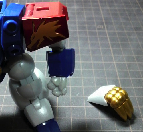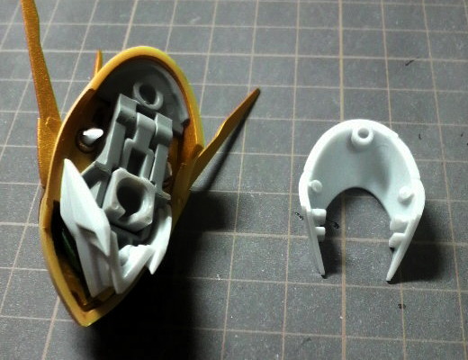 肩のパーツは前面のプレートと上部の龍牙拳の基部を外します。