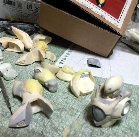 あとは地元サークルで計画中のネタの為に型取りをするパーツの整形中。